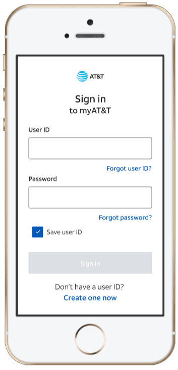 AT&T Security Profile sign-in screen on mobile